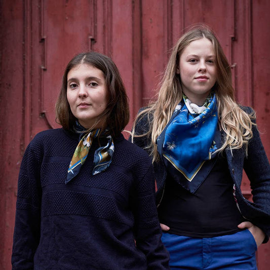 Pañuelo de seda - Flora Danica amarilla - 90 x 90 cm
