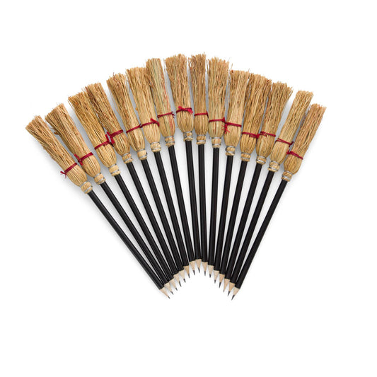 Lápiz escoba de bruja artesana Negro con lazo rojo