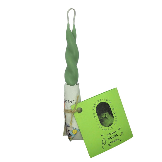 Vela verde ritual pareja SALVIA (Curación) trenzada x 13cm