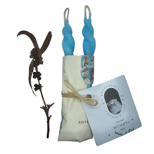 Vela celeste ritual pareja EUCALIPTO trenzada x 13cm (fluir)