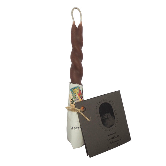 Vela marrón ritual pareja SÁNDALO (meditación) trenzada x 13cm