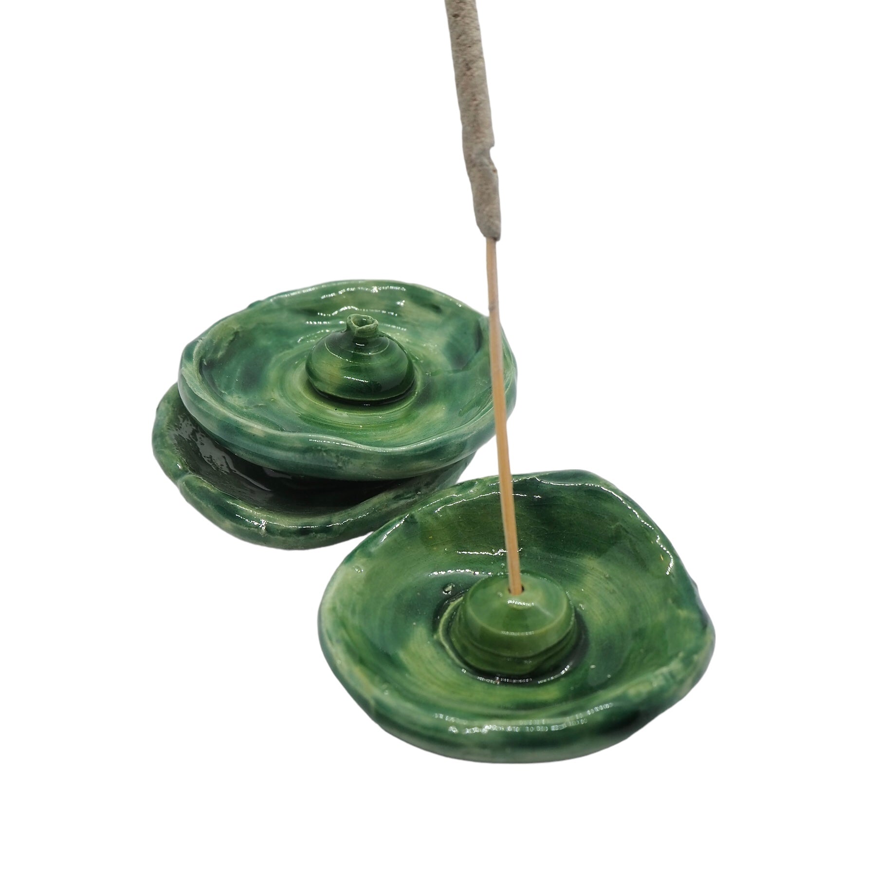 Estos Inciensarios estan formador por un pequeño jarrón torneado, colocado en el medio de un cuenco. El Mini jarrón permite colocar una varilla de incienso de cualquier tipo, mientras que el cuenco que forma su parte exterior recoge la ceniza de cae.