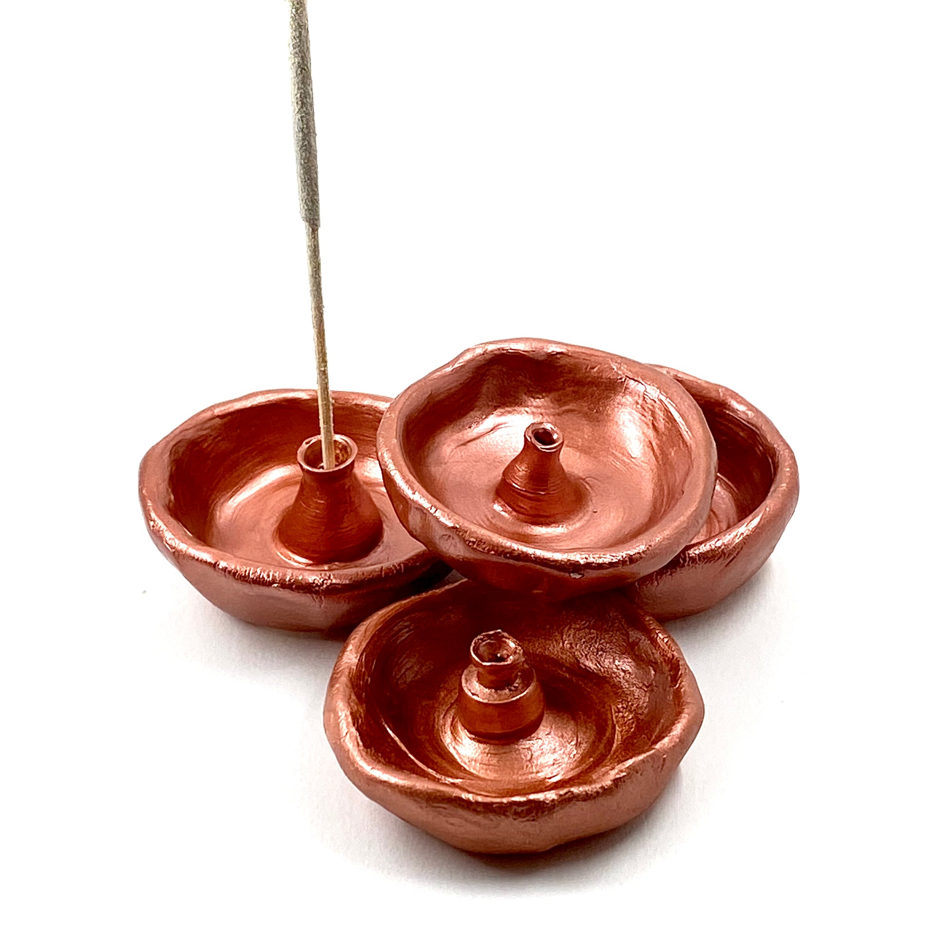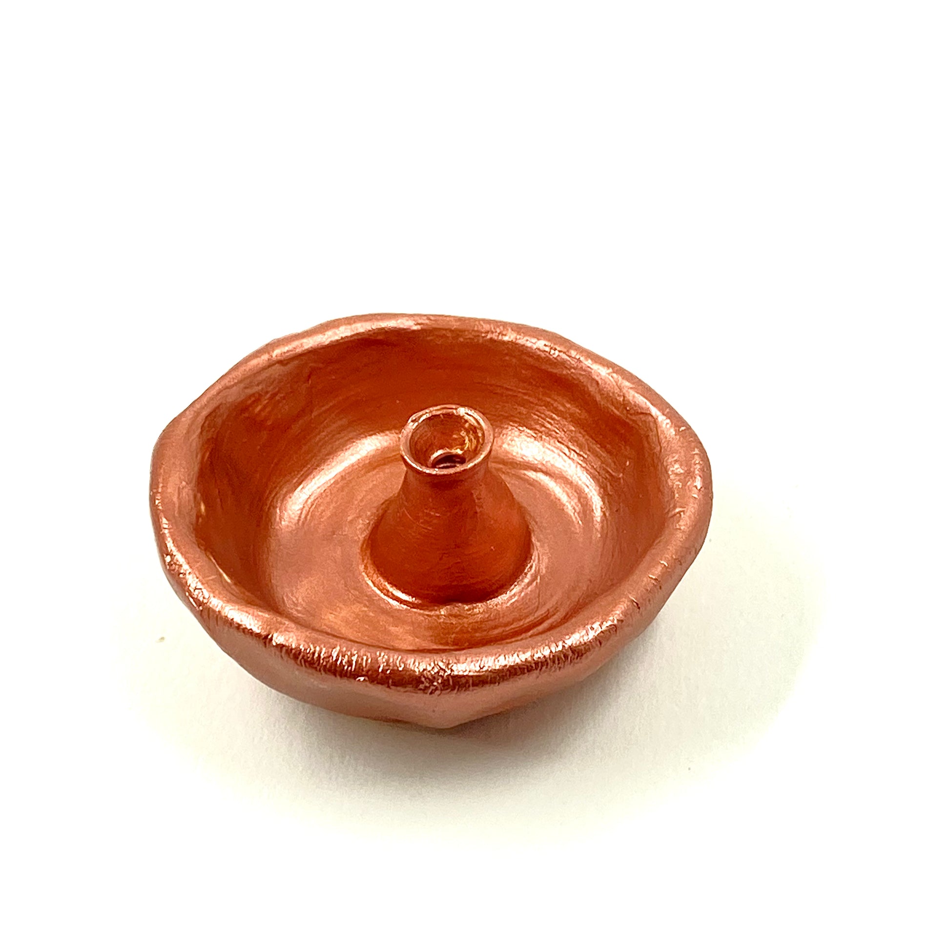 Esta preciosa pieza de cerámica está pensada para no ocupar mucho espacio en un altar o en tu mesa de quemar inciensos.