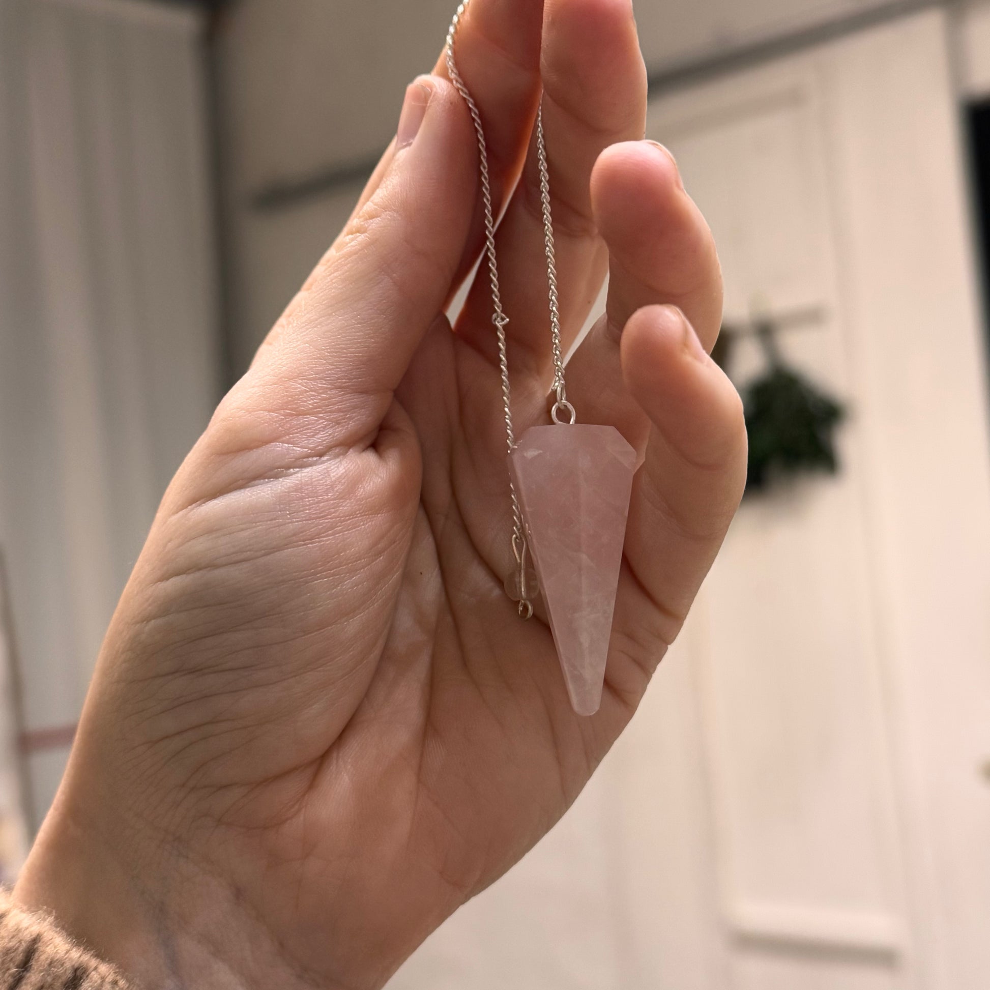 Este péndulo de cuarzo rosa es perfecto para aquellos que buscan equilibrio emocional y calma. El cuarzo rosa es conocido por sus propiedades curativas y su capacidad para atraer amor y armonía. Con su magia, este péndulo puede ayudar a mejorar tu bienestar emocional y enriquecer tus relaciones personales.