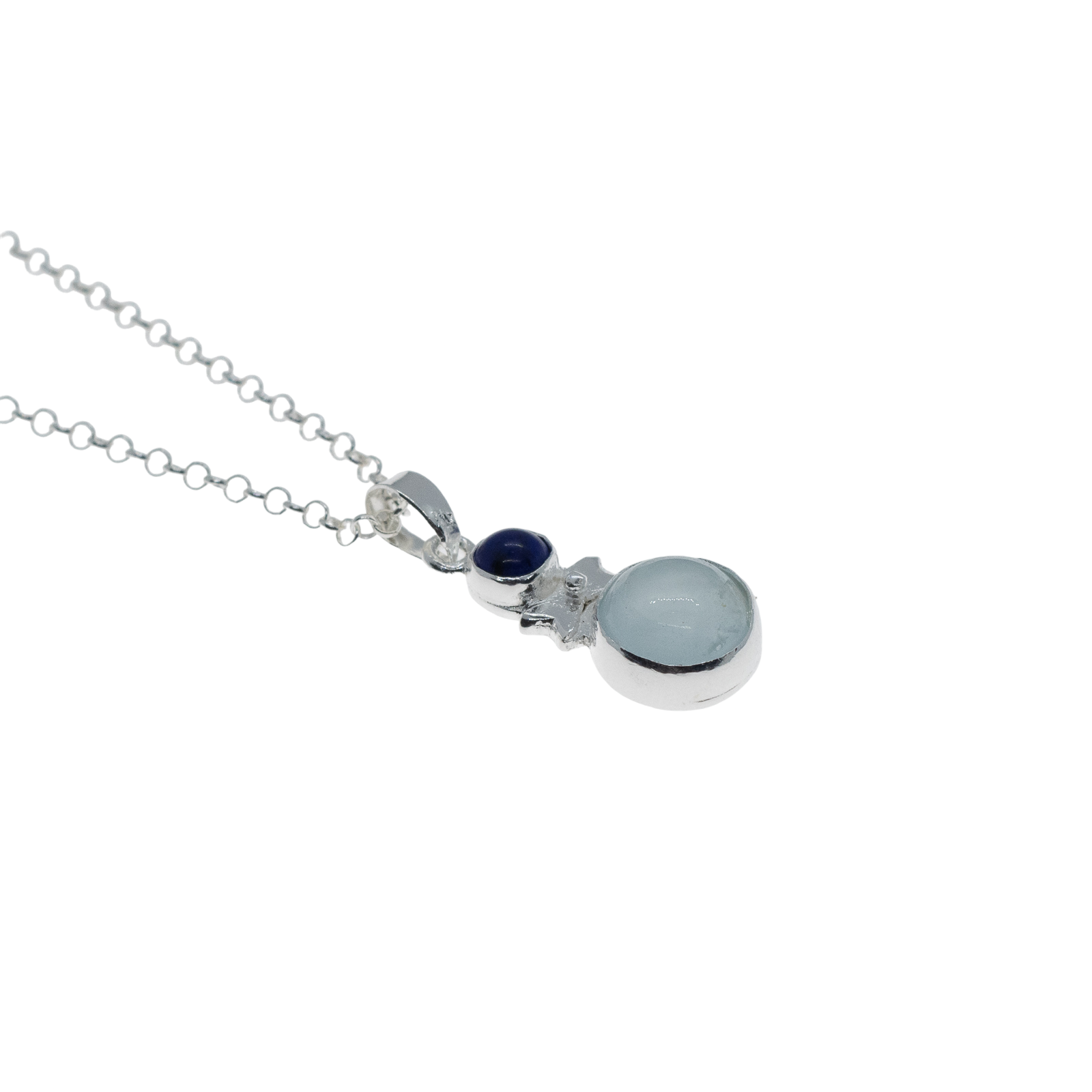 La Aguamarina, y la estrella de Plata que parece orbitar a unos centímetros del colgante, representan la intuición y el cuidado.