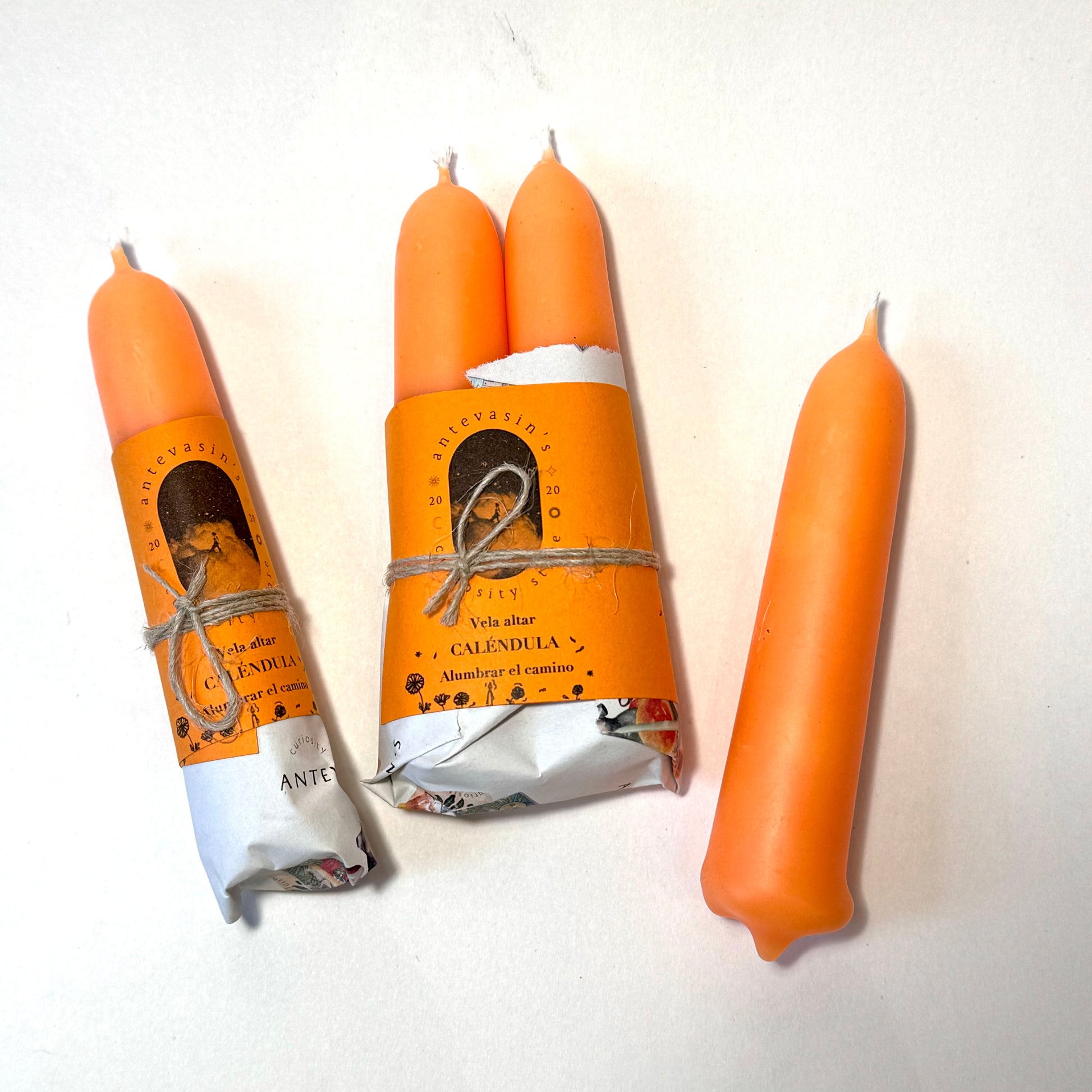 Vela ritual naranja CALENDULA (Alumbrar el camino) 40gr x 13cm