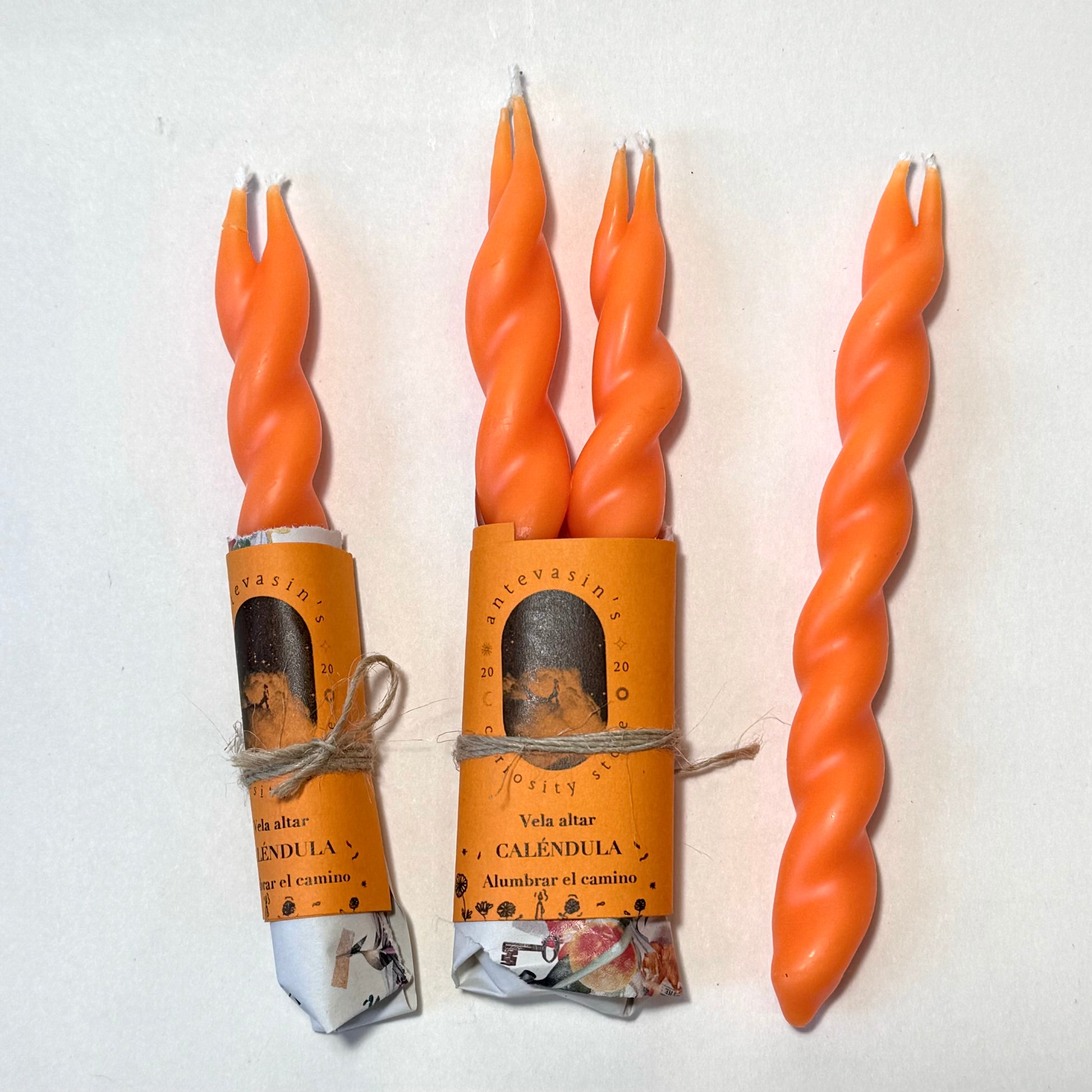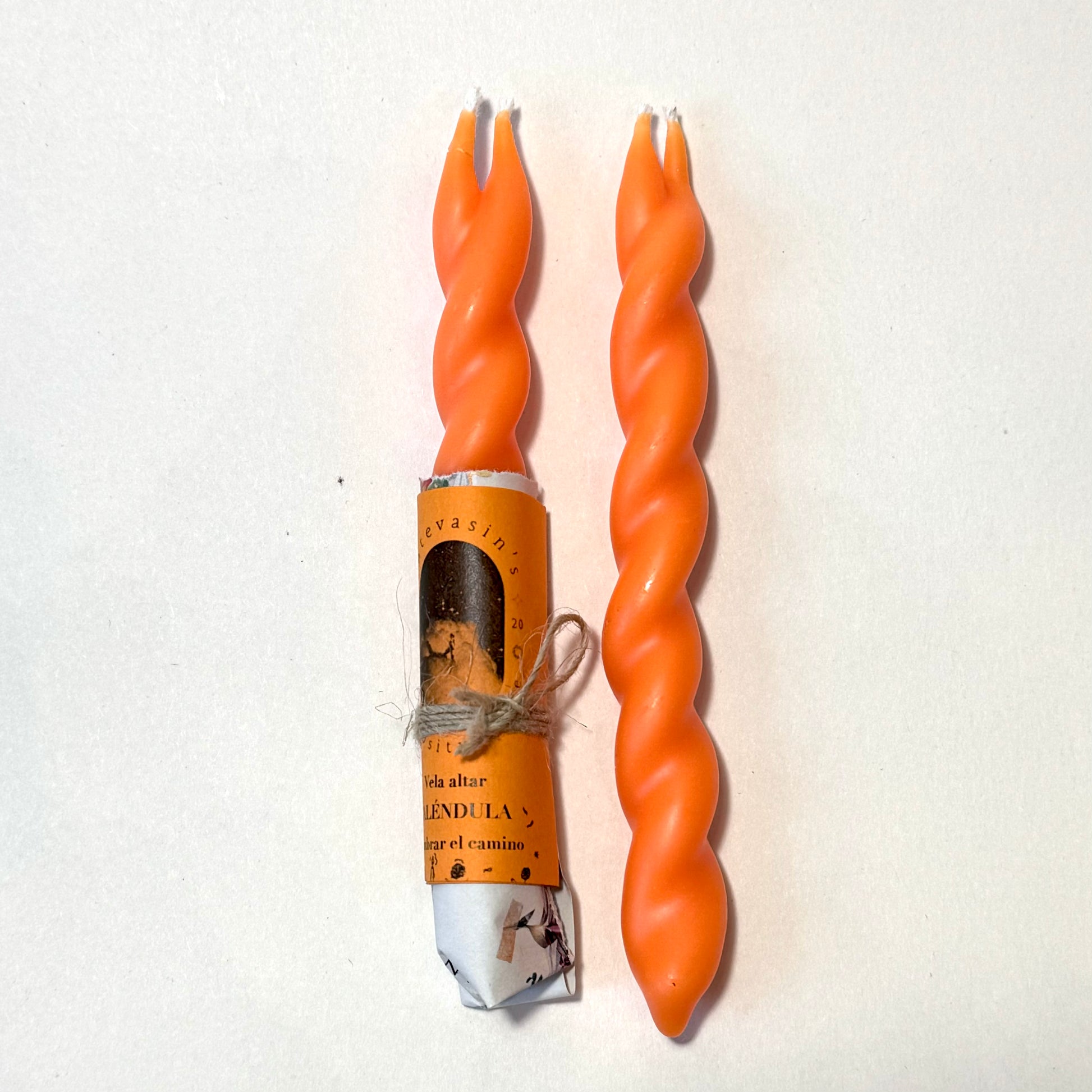 Vela ritual naranja CALENDULA pareja (Alumbrar el camino) trenzada 13cm PAREJA